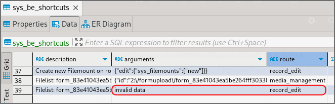 Nach der Änderung eines Datenbankeintrags mit dem Wert routeIdentifier=record_edit ist das Typo3-Backend nicht mehr nutzbar. Da Admin-Benutzer die Möglichkeit haben, diese Lesezeichen global für alle Benutzer zu definieren, führt dies dazu, dass das Backend für alle unzugänglich ist.